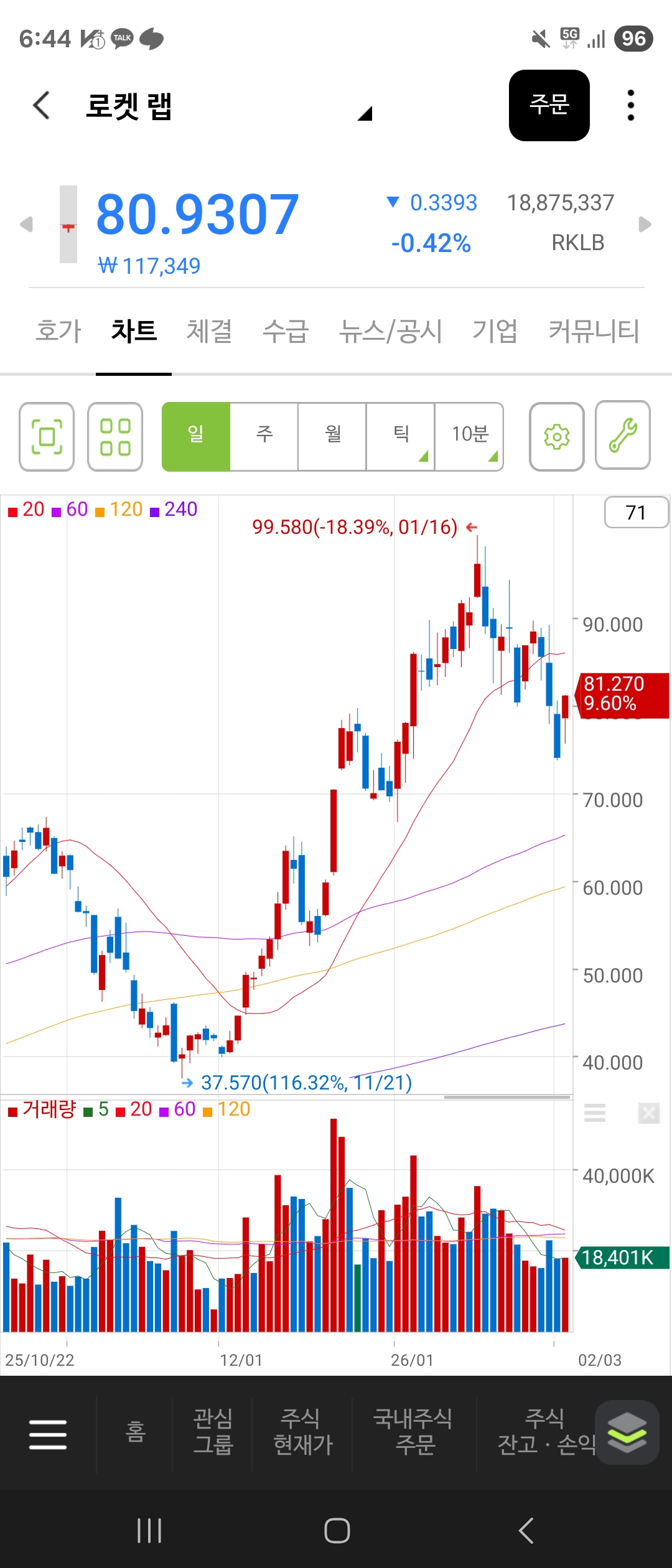 2.차트. 잠시 내려앉은(5일선 하방에 위치)상황에서 기술적 반등이 일어난 상황이었다. 이또한 엄밀한 팩트를 체크하지 않고, 또 차트가 밀려도 거래량이 아직 터지지 않았음을 체크했어야했다.