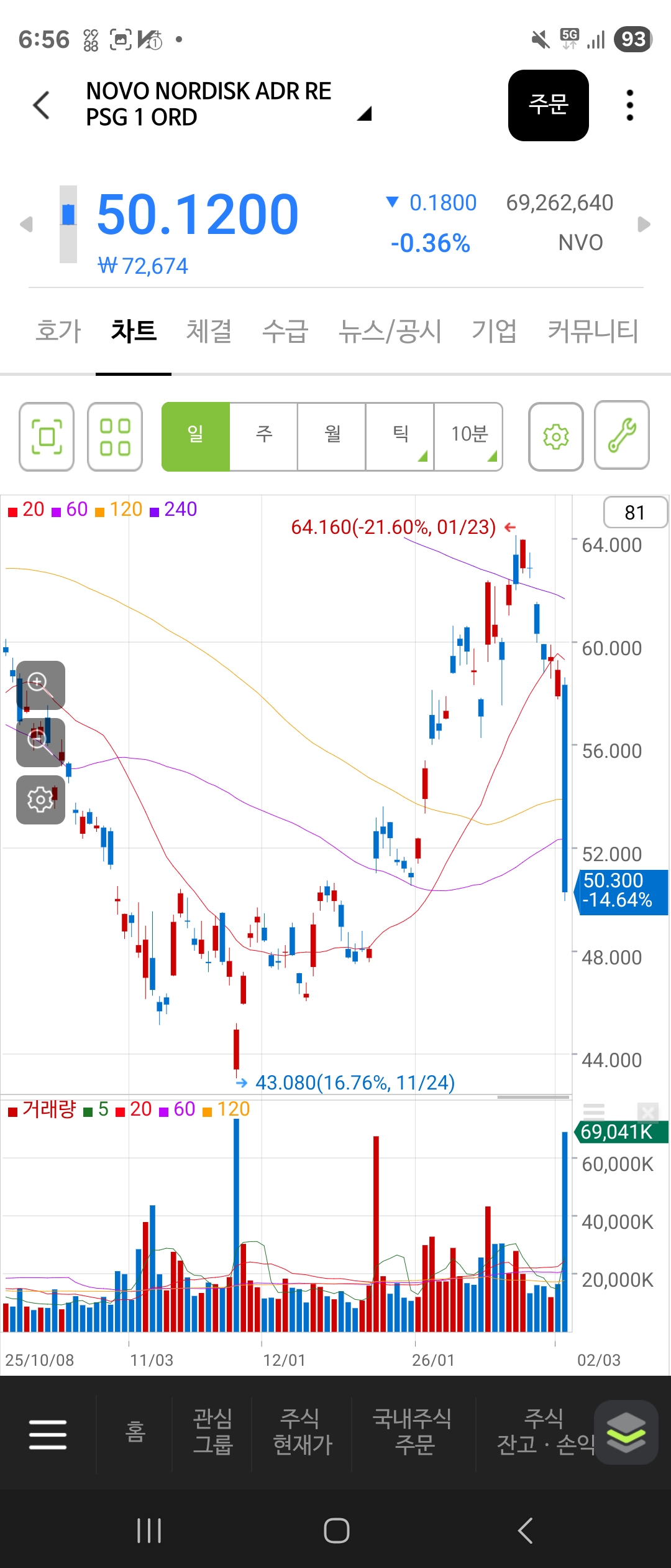 노보노디스크 투자의 결과는 '내러티브, 역대급 수급장의 한달을 겪은 주린이의 위험한 결말'로 정리하고싶다.