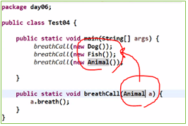 ((Fish)a1).breath(); //주의 깊게 사용해야하는 다운캐스팅 방식