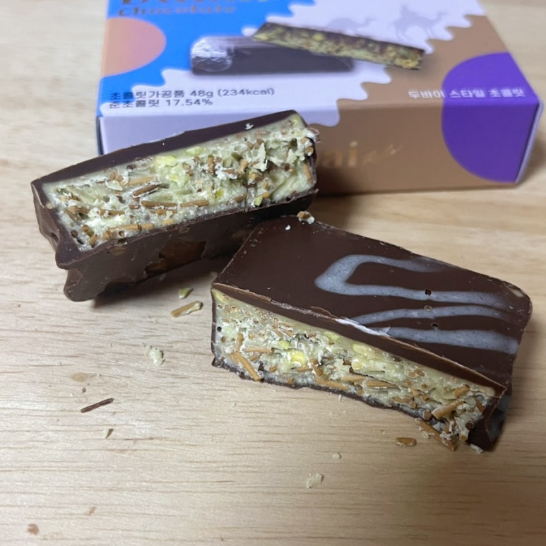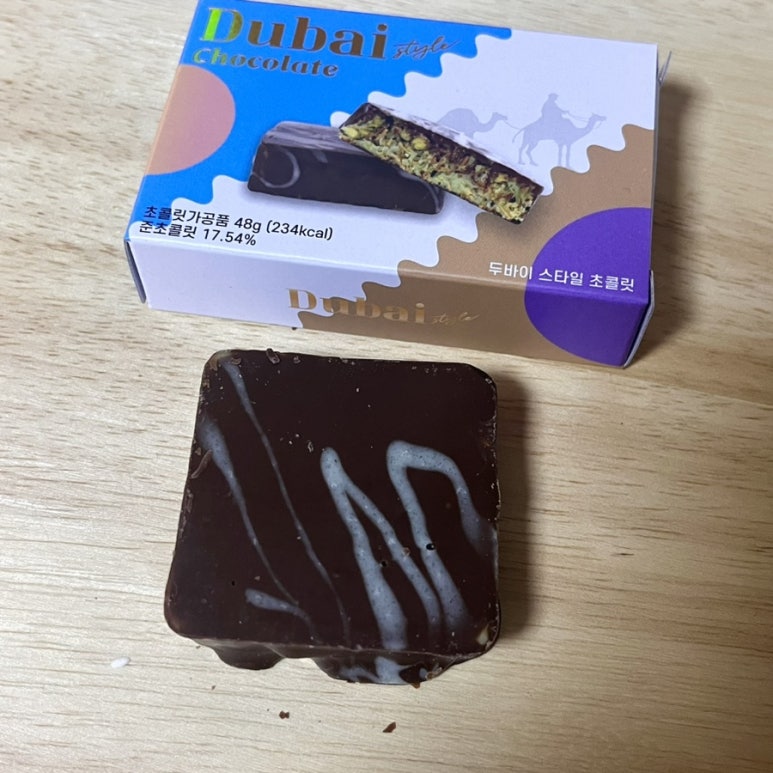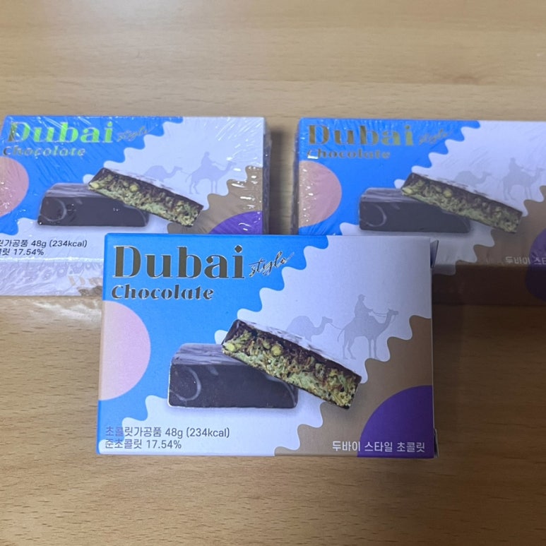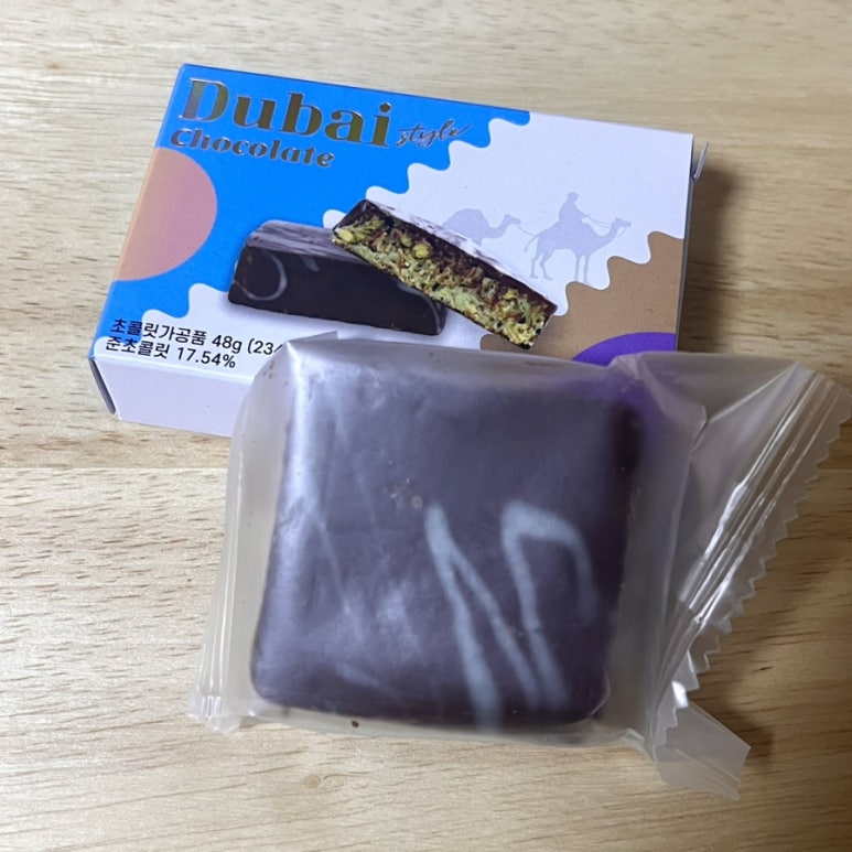 오리지널 두바이 초콜릿의 레시피에서 착안해 현재 전 세계적으로 수급이 어려운 카다이프 대신 한국식 건면과 피스타치오 분말 등을 활용해 달콤한 초콜릿과 고소한 피스타치오, 바삭한 식감이 특징이다. CU 두바이 초콜릿은 일주일에 두 번, 수요일과 토요일 점포에 입고된다. 중소기업 몽뜨레쎄와 손잡고 ‘두바이 스타일 초콜릿’을 출시했다